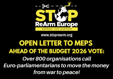 November 2025 – OPEN LETTER to the Members of the European Parliament (MEPs) Over 800 organisations call Euro-parliamentarians to move the money from war to…