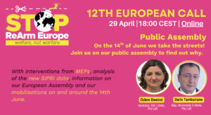 - Interventions from MEPs Özlem Demirel and Dario Tamburrano on the latest steps toward militarisation inside the European Parliament and why the peoples of Europe need to take the streets