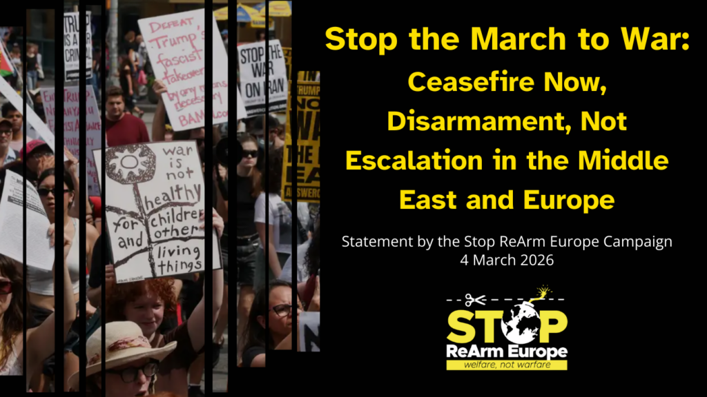 You can open the PDF version and download the statement here: StopRearmEurope-Statement_Final